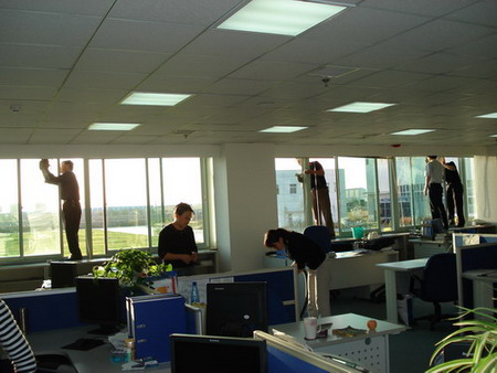 業(yè)務(wù)技術(shù)黨支部共32人參加勞動(dòng),支部書(shū)記梁文運(yùn)與支委們首先對(duì)負(fù)責(zé)清理的二樓、四樓場(chǎng)所及會(huì)議室的窗戶和地面進(jìn)行了詳細(xì)分工,使大家在有限的時(shí)間內(nèi)有條不紊的進(jìn)行。特別是二樓只有13人參加勞動(dòng),衛(wèi)生清理工作量比較大,但大家都沒(méi)有任何怨言。在勞動(dòng)中,鄭素紅、房凝、徐寶紅、牛愛(ài)香四位女同志連續(xù)工作一個(gè)半小時(shí)打掃了二樓的所有辦公室和會(huì)議室的地面。李正民副總和李同華副總率先帶頭擦起了窗戶,在擦完窗戶后大家又把所有的窗臺(tái)和地面的衛(wèi)生死角清理了一遍。